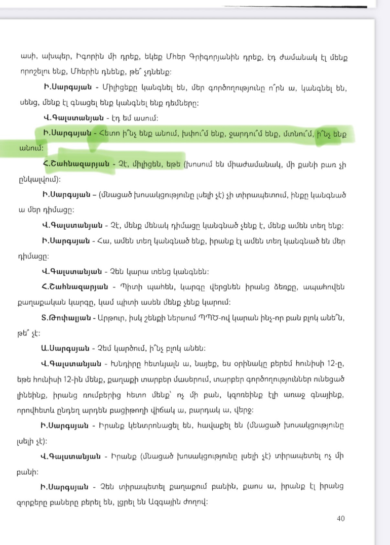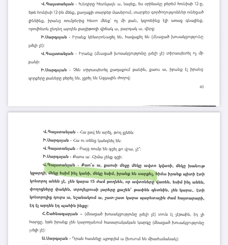 Կից նկարներում քննչական կոմիտեի տարածած ձայնագրությունների հաջորդական հատվածներ ու գլխավոր դատախազի` ԱԺ ներկայացրած հրապարակային միջնորդագրից հատվածները: