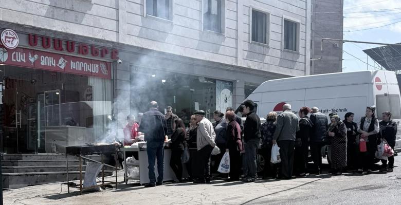Էրեբունիում Փաշինյանի կողմնակիցները խորովածի հերթ են կանգնել։
